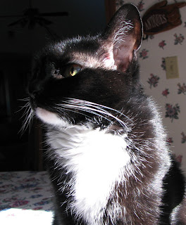 This is one of Abby's favorite spots in the house. She has claimed this as her table. She likes to be up on top of something because I suspect she enjoys directing the other cats on who are below her. Haven't you got enough pictures yet?