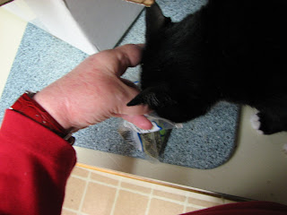 NOW she can get right into it. She actually put her entire face into the open bag when I held it out for her.