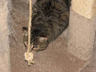 You can see where she has taken great pleasure in using the arm of the condo to scratch her little heart out.