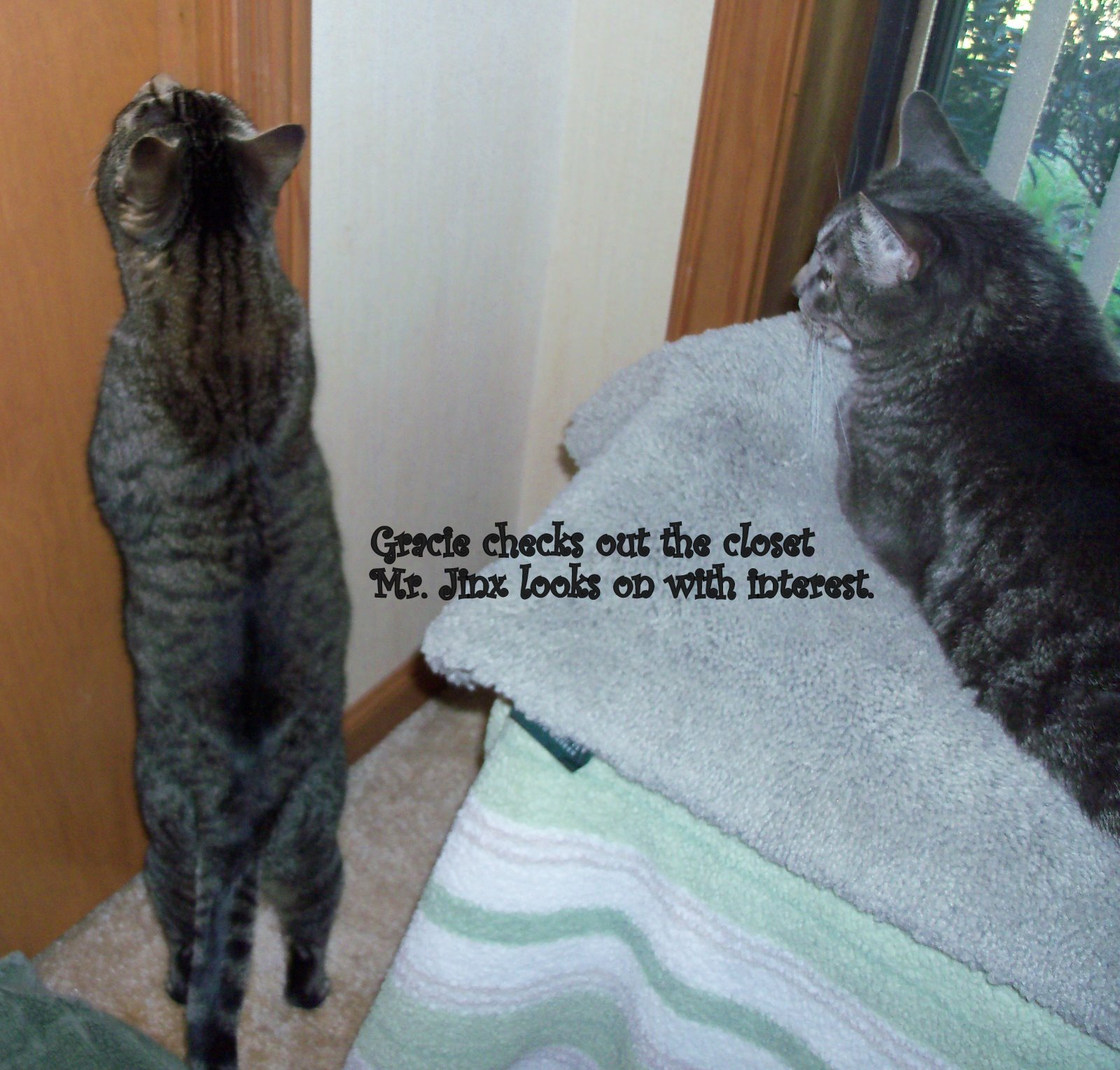 Is there something to play with in the closet or just a great spot for napping?...Hope you find what you're looking for sweeties!...xo...Calle, Halle, Sukki