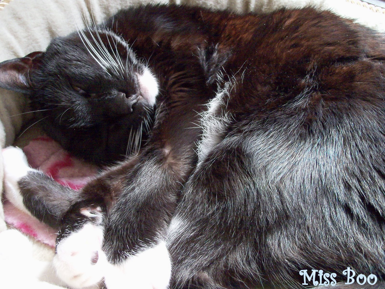 Miss Boo, what a sweetie you are, all curled up. Our human wants to come and snuggle up next to you. :-)