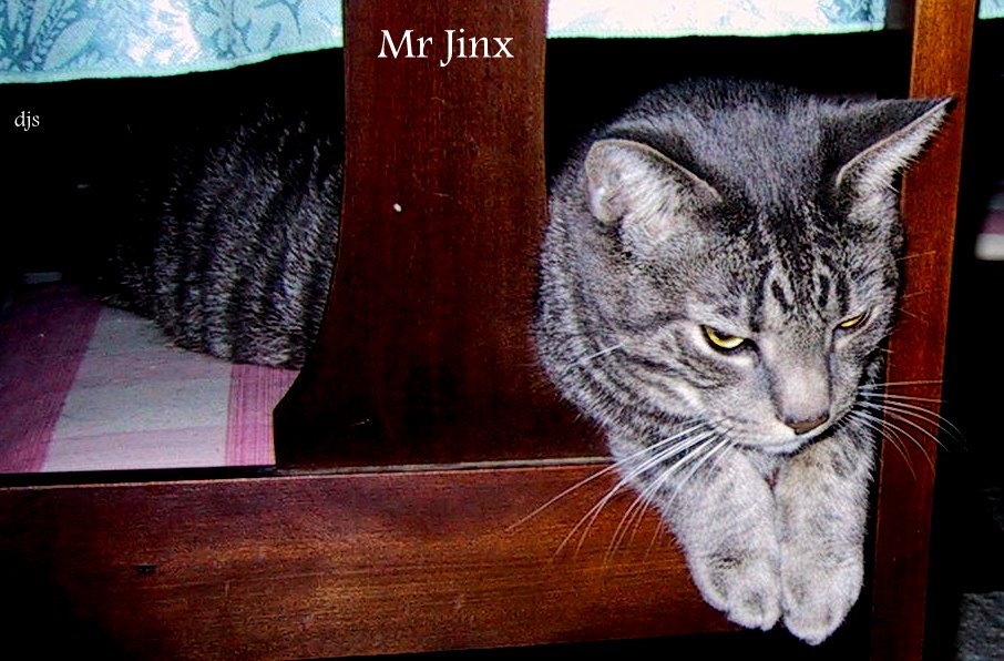 ReplyDeleteHa ha ha! That's really a funny pose! Mr. Jinx looks very thoughtful and soooooo cute (well, the Human says he's cute. Me, I'd rather see Abby ;-)