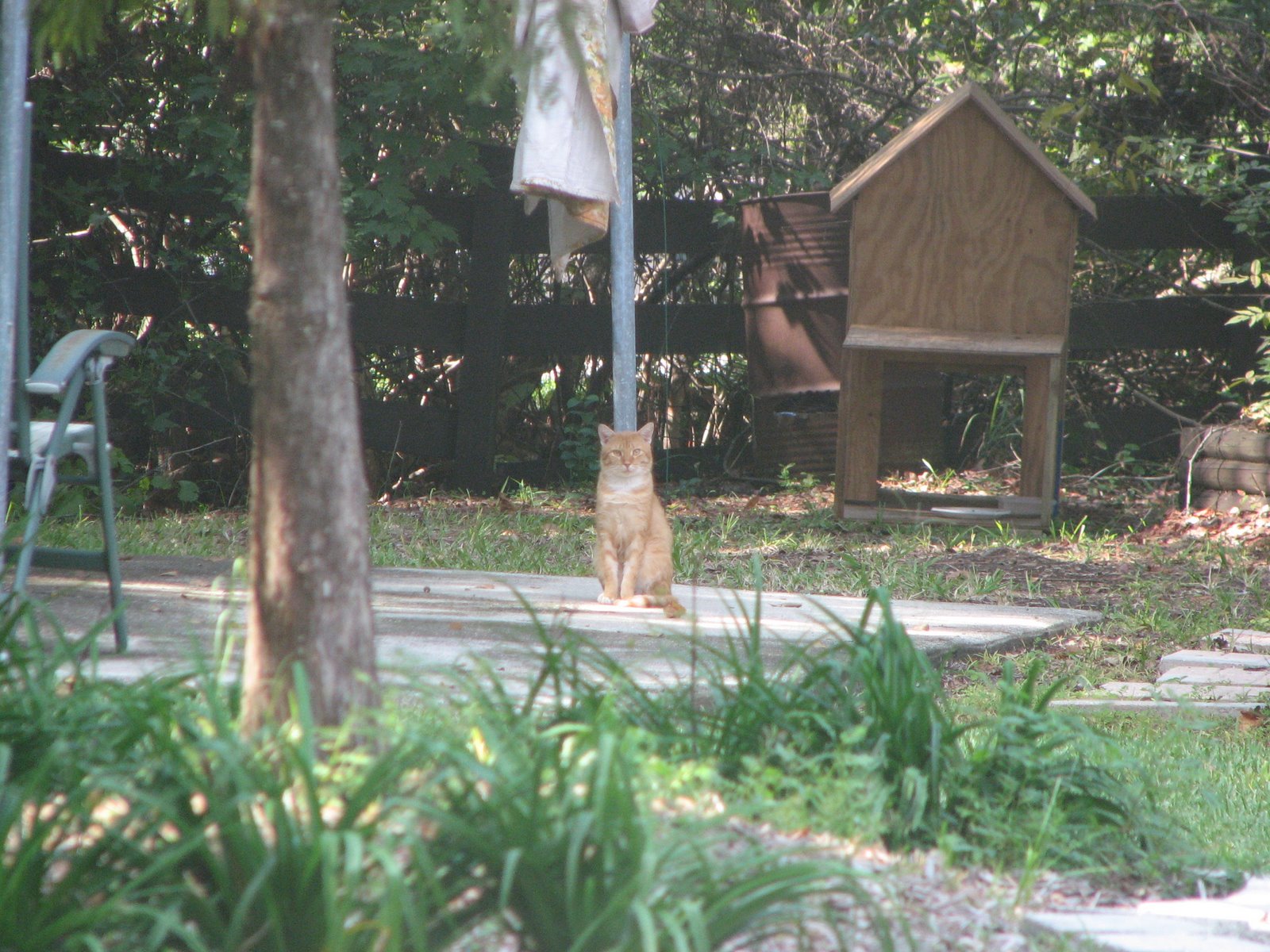 That's a great house! We hope Mr. Kitty decides to use it, especially in inclement weather. At least he has food and shelter, thanks to your humans!
