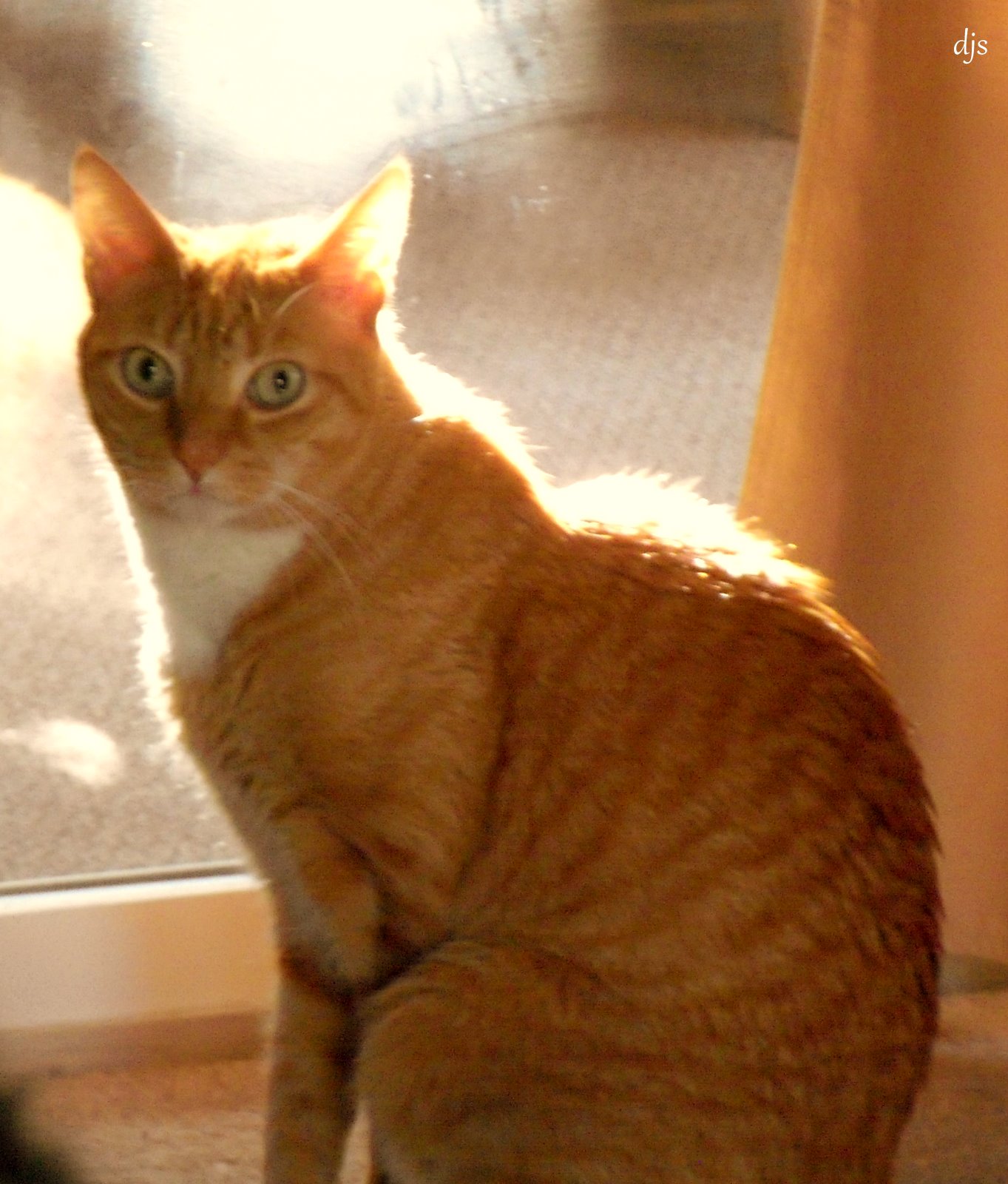 23. It looks nice and sunny there so we would want to go out too. We definitely do not want to go out here though. First it was the snow and ice and now it is the heavy rain. We run out to the garden have a quick pee and run back in again. (We prefer the outside rather than use our litterboxes).