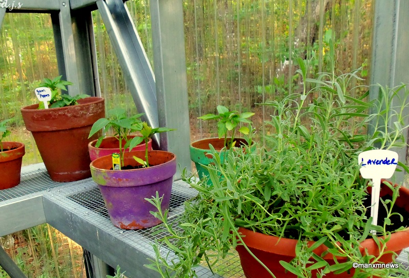 We are slowing filling the greenhouse with herbs and vegetables.