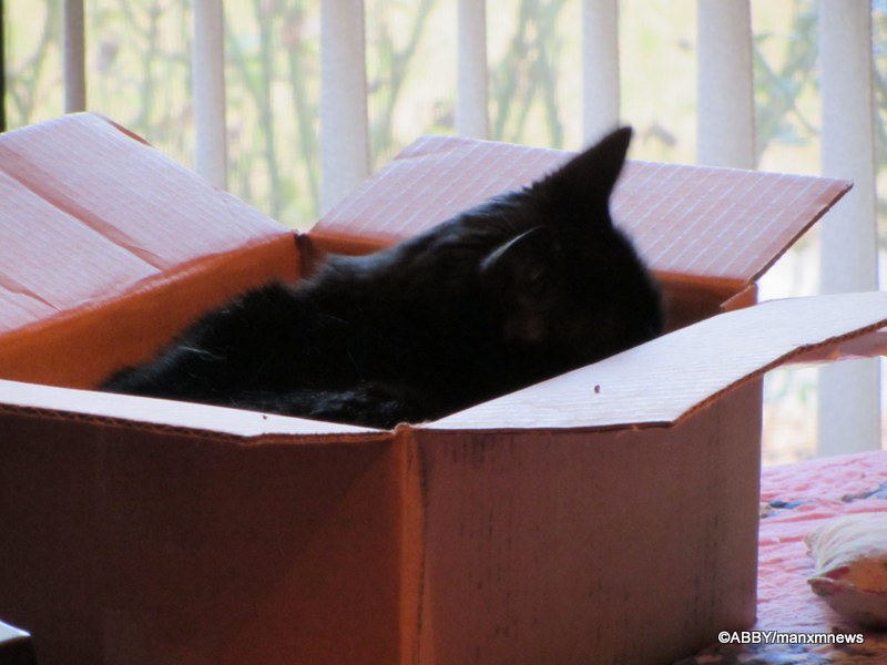 We are glad to see Abby playing and happy in her box.