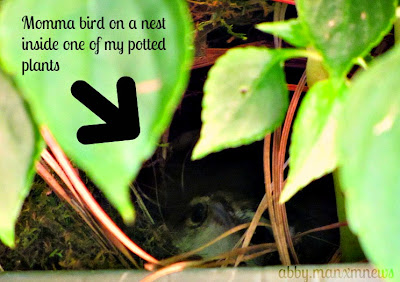 ReplyDeleteAwwww the little bird family in the little bird nest! How ADORABLE!! Awww sweet Abby - your garden is gorgeous! Take care