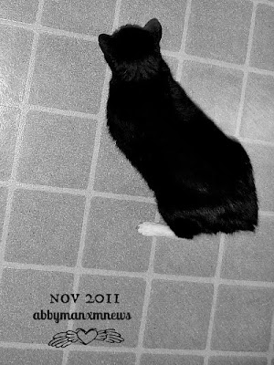The area Abby and I are in is the laundry room, which Abby would always follow me into each morning as I cleaned out the litter boxes.