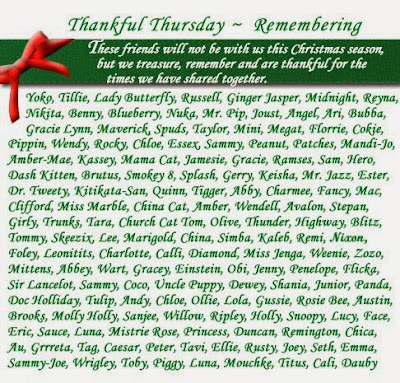 This lovely graphic done by Ann of Zoolarty remembering those who will be celebrating with us in Spirit this year. Thank you Ann.