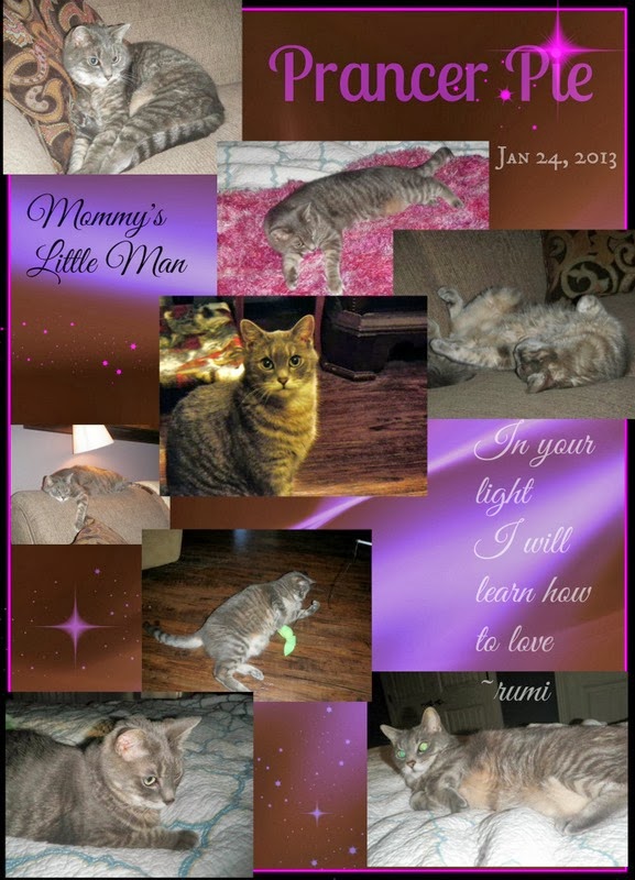 ReplyDeleteSuch a beautiful, beautiful graphic and tribute to Prancer Pie and the quotes are so touching. We are so, so sad about Prancer Pie's sudden passing and so sad for his Mommy and so sad for his family.