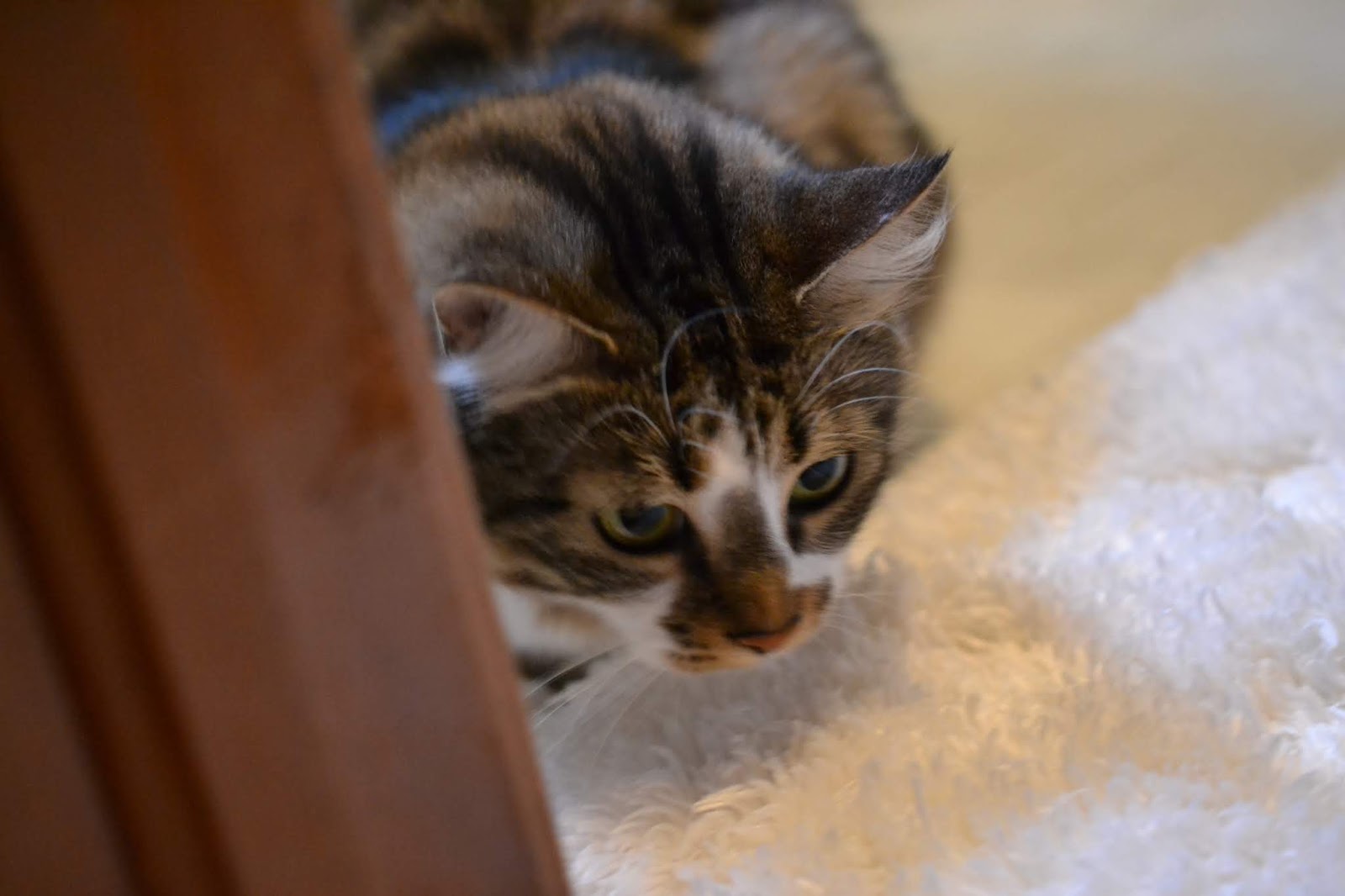 Annabelle you are such a cutie. Rugs are fun and I like to lay on them while brofur Rumpy Bump grabs them with his huge feetz and rolls up in them as he kicks them into submission. wow that was a long cat-moewolog