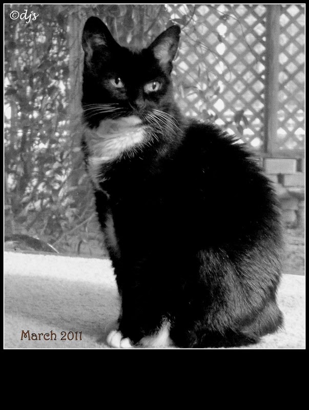 This photo is one of my all time forever favorites of Abby. I had it made into a over sized photo canvas last January. I photoshopped it to erase out the ugliness that her illnesses had done to her,so you'll have to forgive me for editing out the harshness. I would never publish a photo of her that was unflattering. But the story behind this is it was the last hurrah she had. That morning, August 3rd, a Saturday, she jumped up on the dining room table and had bath , then got down and came and sat with me and all the other cats in the morning sun. I mistakenly thought she had turned a corner, but in retrospect it was truly the last time she felt strong enough and decent. It was all downhill after this. In fact the day this photo was taken she had a set back and had to be rushed back to the ER for the second time in less than week. I didn't know it then but it was the beginning of the end.