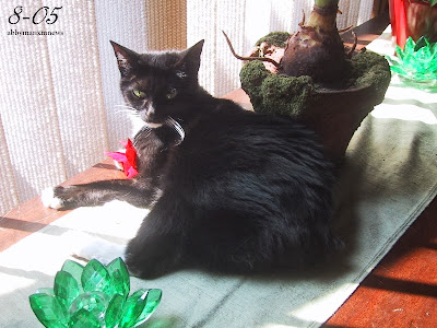Update:I hope the my sharing some of my memories does not cause anyone sadness. I am expressing some bittersweet emotions with my postings on Abby. It brings back some lovely times and I am so grateful to have these memories. They make me sad, still, because I miss Abby. But, I don't want anyone to feel uncomfortable because I am expressing both sadness and happiness. I know in many ways this may bring up sad memories in many because so many of us have been touched by the loss of a very special cat, and even years or decades may have passed, but those tender feelings are still there. I share Abby again because it does bring me joy to be reminded of her, as much as it touches my grief, it still is a lovely moment we shared, that I now share with you. Please know none of this is meant to make you feel uncomfortable. I appreciate all the comments and I just wanted everyone to know that as much as it may sound like I wrote this in sadness, I didn't. I want to keep remembering her for the joy she brought to me as I move along my journey with her now. Thank you for understanding.