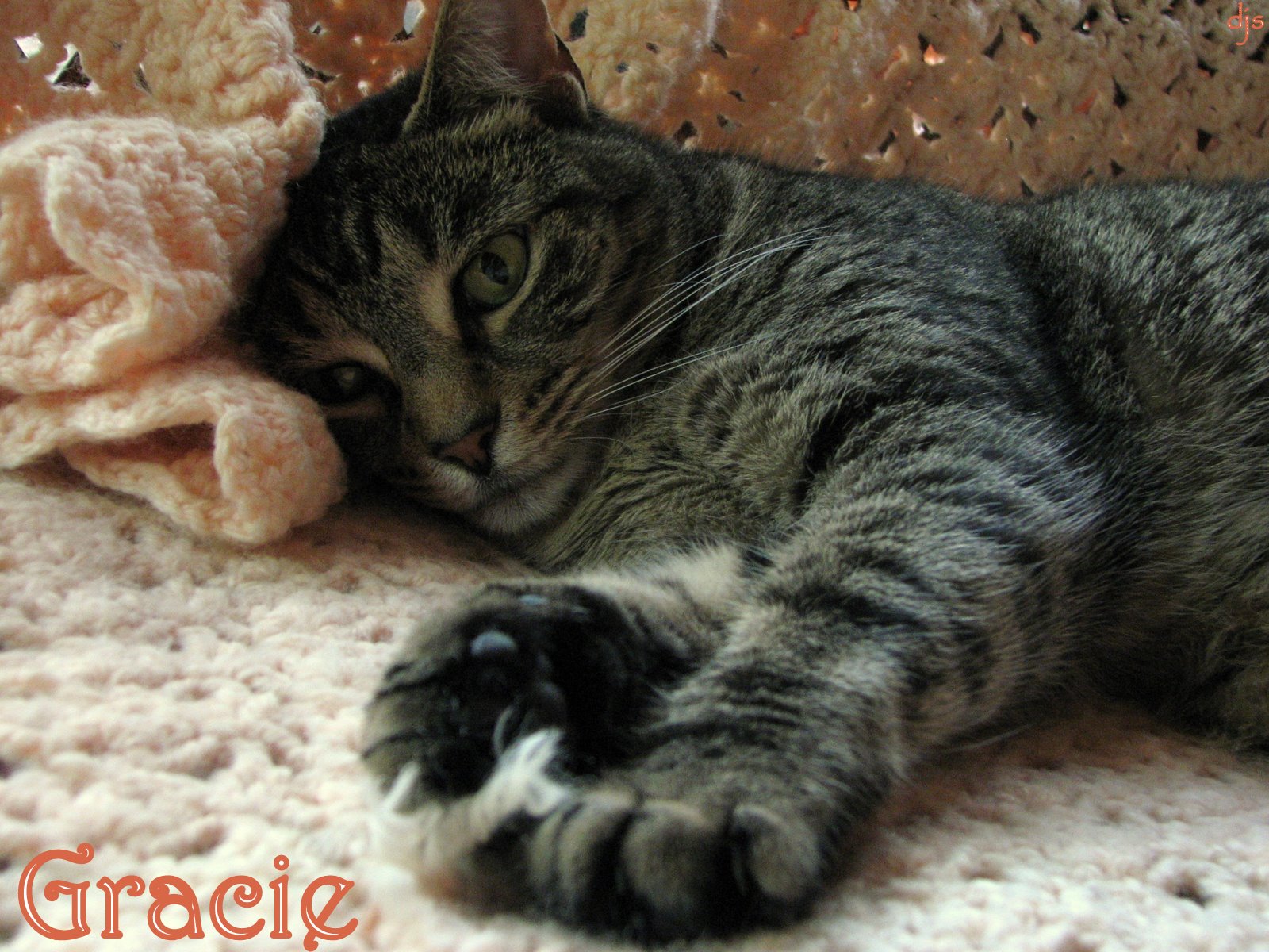 h*ellhole shelter). I am so glad that our former kitty Button led us to you Gracie and we were able to save you. Just one more little tabby girl did not stand a chance for adoption. But you captured our hearts that day as you have each and every day since. As Brian says "adopt cats we deserve it" and he is so right!