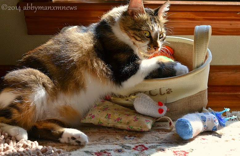 There are several toys that have nip inside of them that are in the 'toybox' and Annabelle was having a fun time playing around with them.