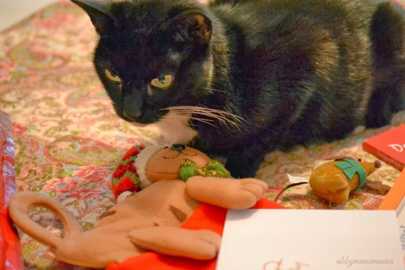 Boo got her Secret Paws from Layla at Cat Wisdom101. There was a wonderful Christmas Cat Stocking and a terrific Christmas Mousie to play with on Christmas morning. She also included 2 books for Mom to read to me.