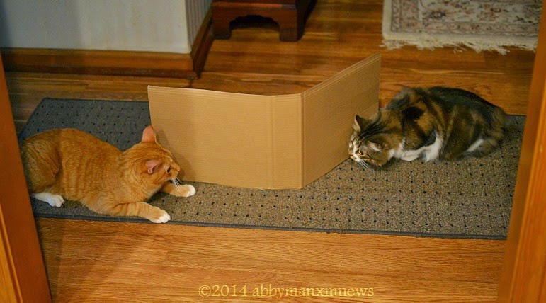 Oh hooooo Mom put up a fence and now Ping and I are going to paw paw over it!