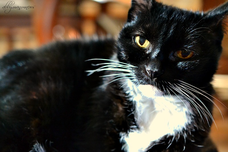 Abby is lying on my lap