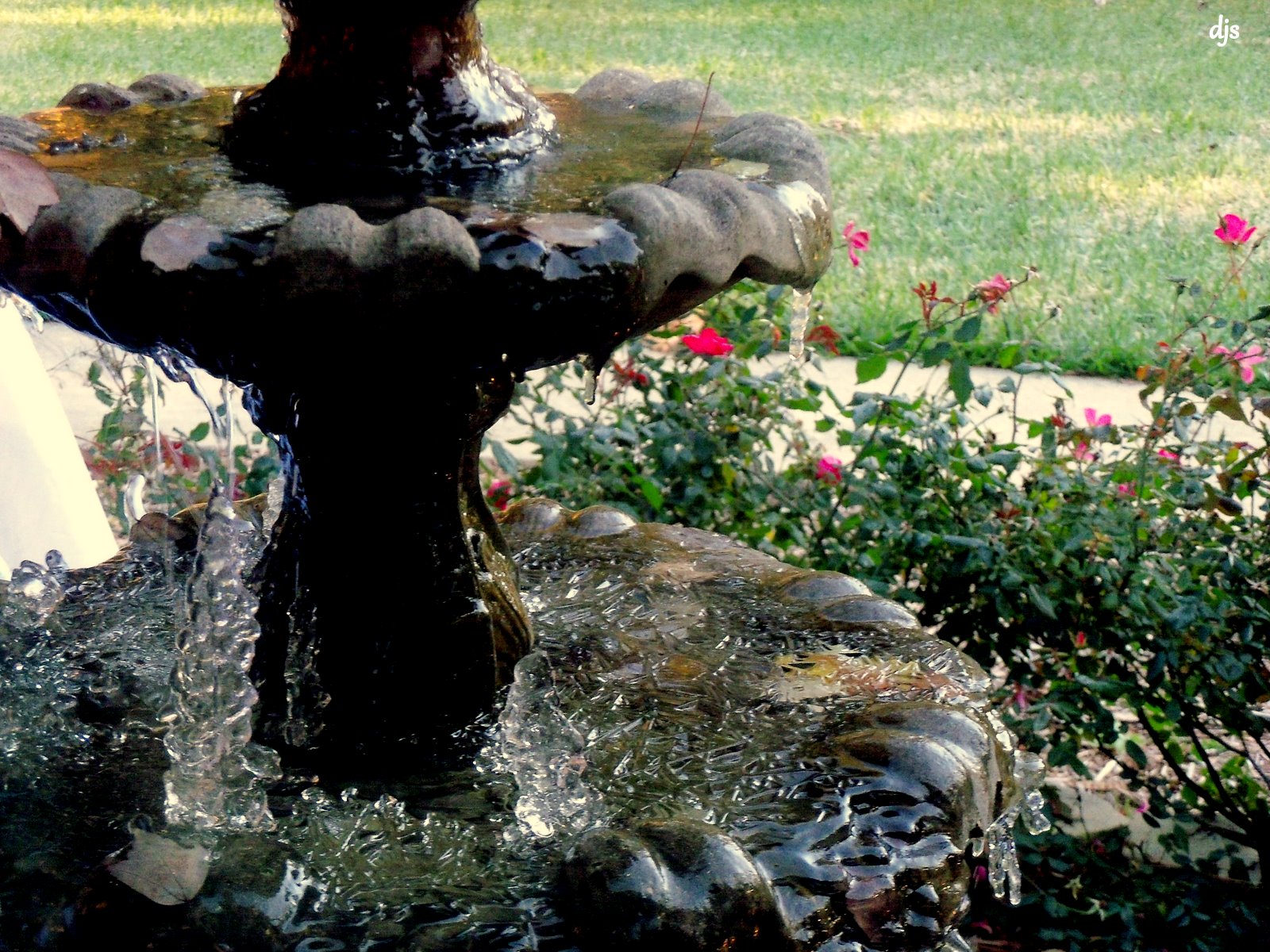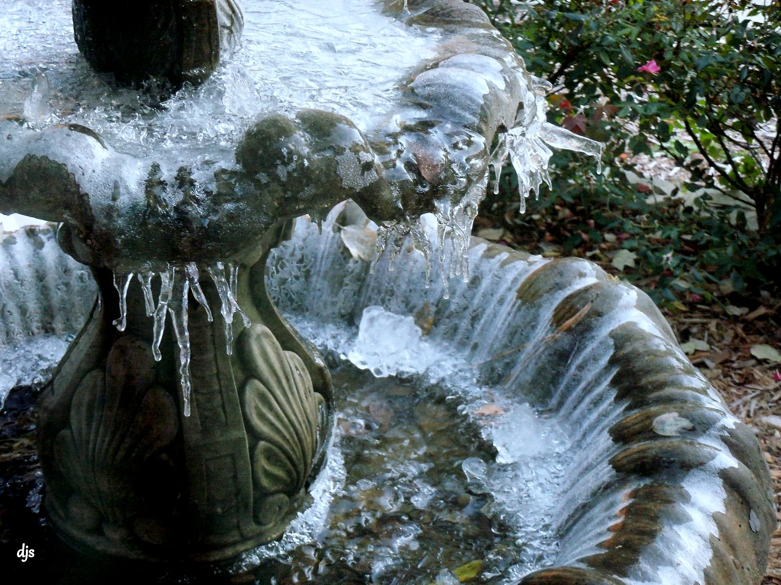 This was taken the first week in December, notice the fountain is frosty and icy but the water is still moving.