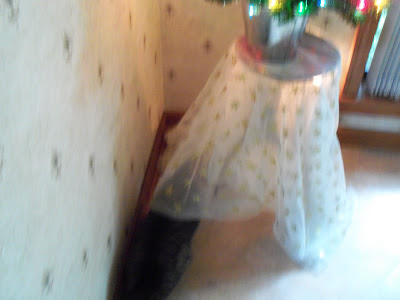 Today one of the Christmas trees went up.Can you see two furballs?