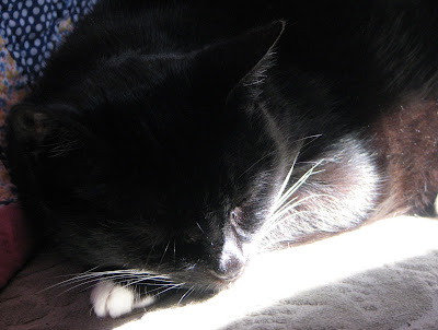 In one story,Homer's Mom moved from Miami to NYC in January of 2001, she was lucky enough to find a studio apartment not far from the Twin Towers. On 9/11 she had gone home to feed the kitties (she has three -- Homer, Vashti, and Scarlett -- unfortunately Vashti just recently went to the Rainbow Bridge) because her office was not far from her home, and then left to go back to her office. After returning, as the nation and world watched madmen took down the Towers. She was cut off from returning to her home and she was so afraid that the destruction had impacted her apartment building and all she could think of was her three cats and especially blind Homer with broken windows throughout the building. Early on during 9/11 no one knew what was going on and she like millions of other New Yorkers were forced to leave Manhattan. But once they realized the 'danger' had passed, people, including Gwen tried to get back into Manhattan. She was turned away countless times, but after three days she was finally able to appeal to some soft hearted NYC police officers who had been stationed at blocked off points and make it to her apartment building. She did find that the building was undamaged, which for her was the first major relief. Then she had to climb 31 stories in a dark building to Homer, Scarlett and Vashti. They were all fine, scared I'm positive but fine. She was able to take them all out and everything worked out. I was especially struck by the rising fear in her heart while she retold this story, because it is one of those situations that all of us kitty Moms worry about. Our babies being stuck someplace where we cannot get to them. I sat with Abby on my lap and tears fell from my eyes as I placed myself in her shoes.